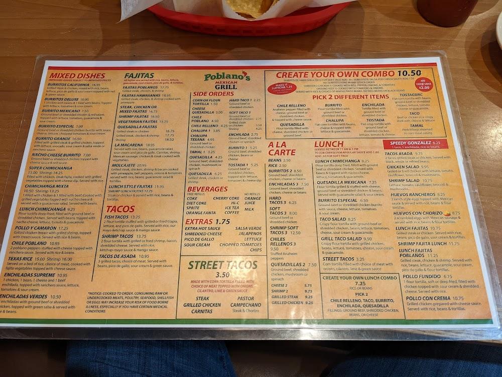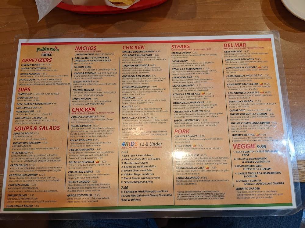 Poblanos serves a varied menu that honors traditional flavors. Appetizers, like guacamole and nachos, impress with taste and presentation. Entrees highlight grilled meats, tacos, and burritos, ensuring everyone finds something they love. Specialties include shrimp tacos and hearty fajitas, which sizzle as they reach your table.